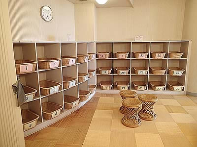 | 寝湯 | リラックスコーナー リラックスコーナーの奥に露天風呂へのエントランスがあります |