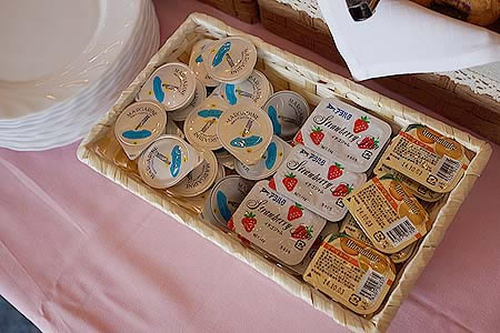 ホイップクリーム、苺ジャム、マーマレード