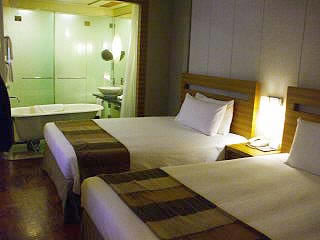 ![]() 部屋はツインで、浴室はガラス張り。 |