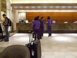 ![]() エアアジアXのCAはすこし化粧が派手な印象。 |