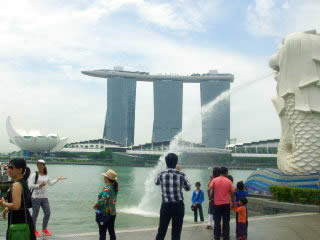マーライオンとマリーナベイサンズの2ショット写真。 |