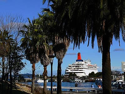 ![]() 「にっぽん丸」(商船三井客船)は、 全長約166m・全幅24mの 総トン数20000トンクラスの大型客船 |