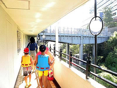 ![]() 屋上の連絡橋を通って国道135号線に出ます |