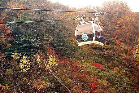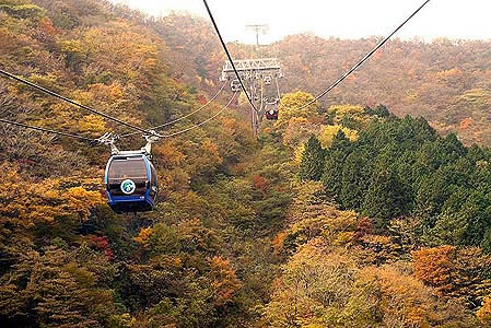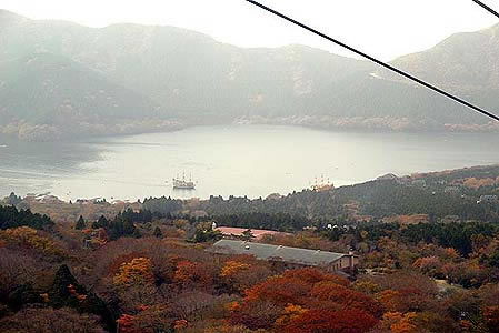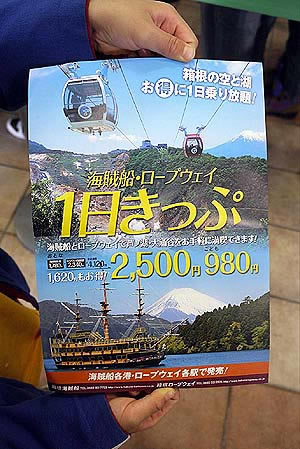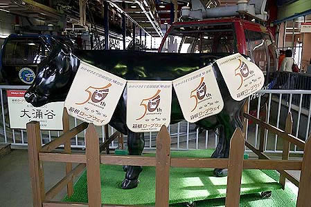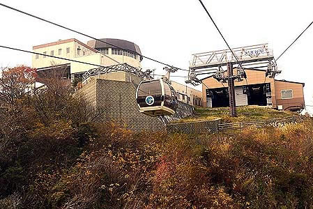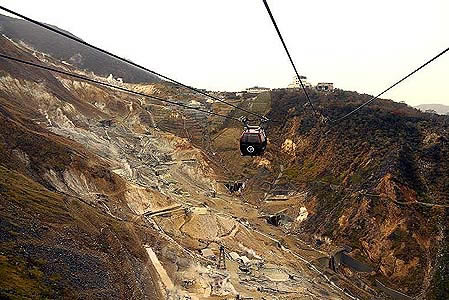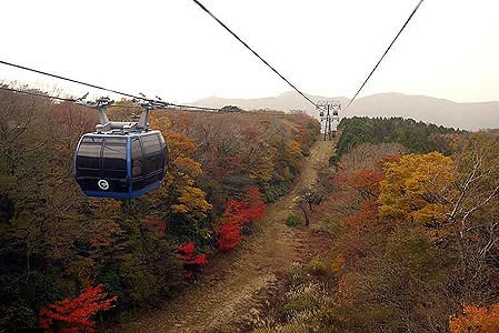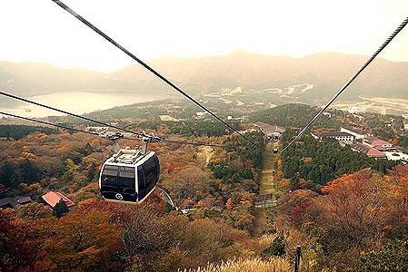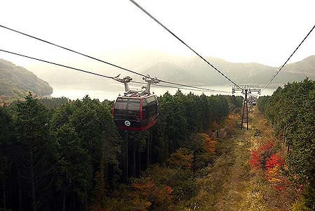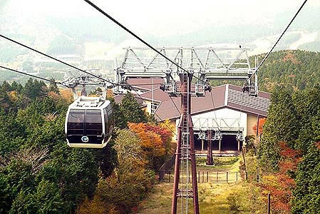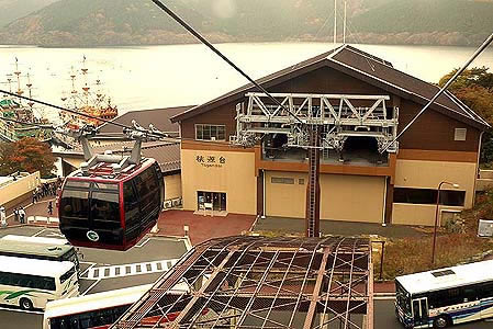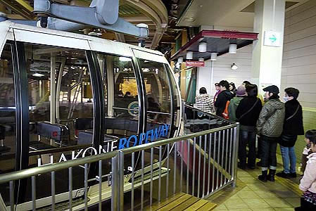 ![]() 桃源台行きロープウェイに乗り換えです ここにも大勢の人が並んでいましたが殆ど待たずに乗れました |