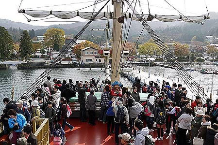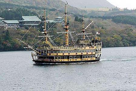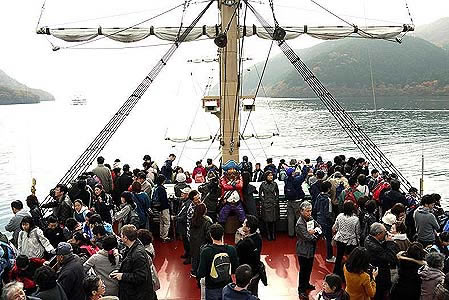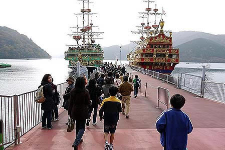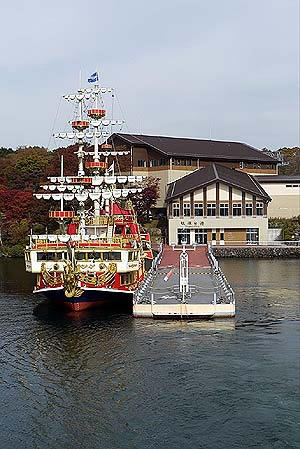 箱根ロープウェイが桃源台駅に着くと丁度10分で箱根海賊船