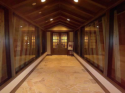 ![]() エントランスからロビーへ向かうアプローチ 左右の窓の外は雪囲いがしてあって、 景色を楽しむ事はできなくなっています |