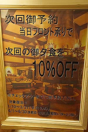 次回夕食の割引案内があったので、チェックアウト前に検討しました
