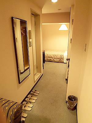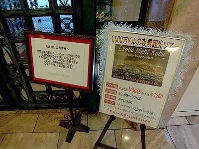 ![]() エントランスを入ると 深夜1〜5時の時間は施錠している旨の告知と 夜景観光ツアーの案内 |