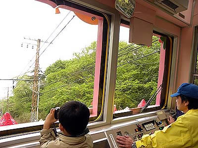 ![]() 帰りの宝山寺線ケーブルもコ11形 ミケ号でした |