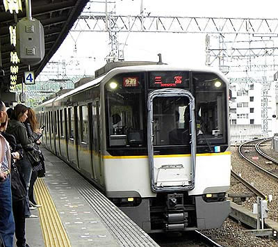 | 生駒駅から 三宮行 近鉄9020系 快速急行に乗ります | 鶴橋でJRに乗り換えて、環状線〜京都線と乗り継いで、 新大阪で改札を出ます |