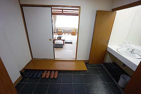 101号室の踏み込み 10名定員の大和室だけあって広い