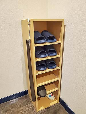 ![]() 下駄箱に館内用のスリッパ |
