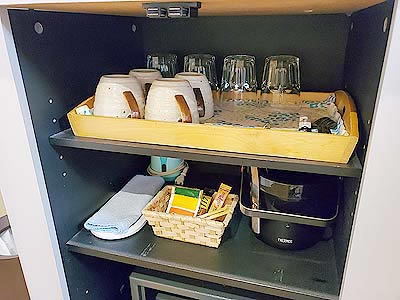 ![]() 冷蔵庫の上には湯沸かしポット |