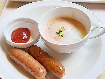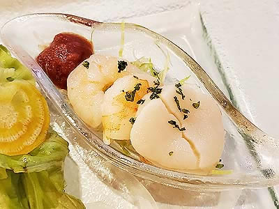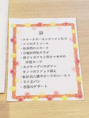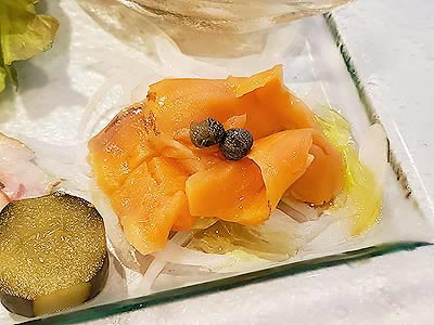 | ピクルス スモークサーモンオニオン仕立て | 季節のスープ 甘いだけで味が締まらないので、 |