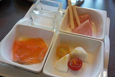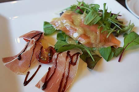 ![]() パスタランチ(1,944円)から モッツァレラチーズと生ハム スモークキングサーモンのサラダ仕立て |