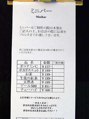 ![]() 冷蔵庫のお飲み物のお値段 |