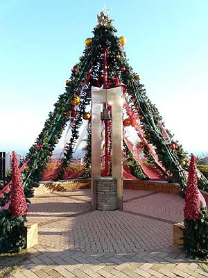 ![]() ウェディングベルがクリスマスっぽく飾られています |