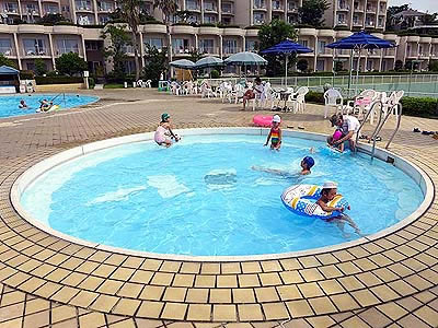 黒潮で満足の朝食を頂いて、お部屋で水着に着替えてプールに向かいます。 |