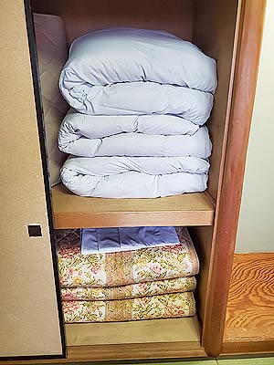 | 3名分の和布団セット 布団敷きはセルフサービスです |