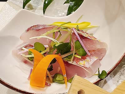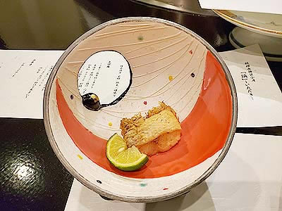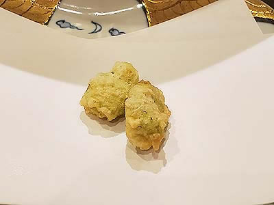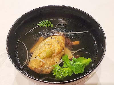 ![]() 吸物 海老の飛竜頭 菜の花 やなぎのこ 白髪葱 木の芽 |
