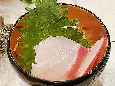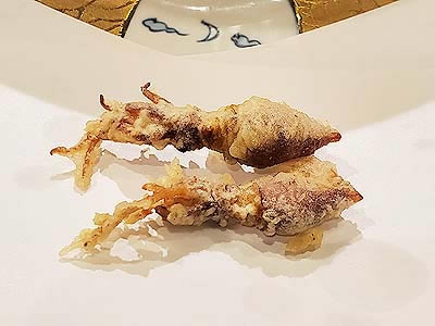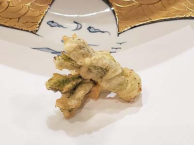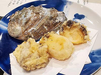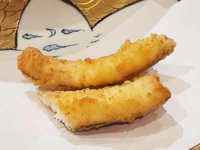 | カウンターの中の調理が見えます | 沼津港で揚がった穴子 しっぽは山椒塩で お腹は天つゆと大根卸しで |