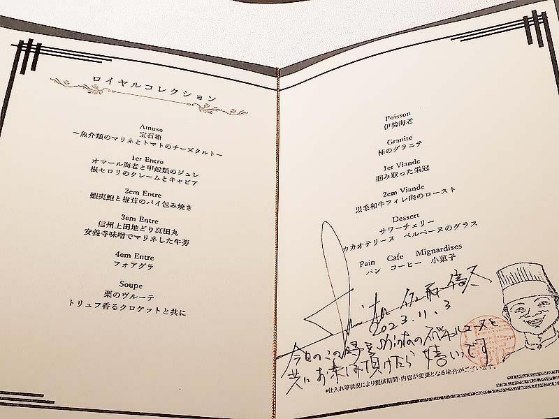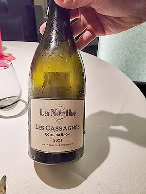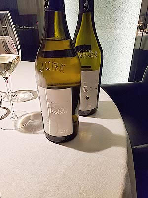 | 突然、信太シェフがテーブルに来て 陽気にしゃべりながら ジュラワイン2本をテーブルに |