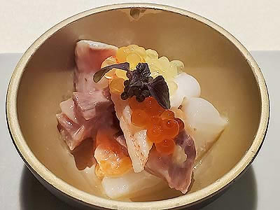 Amuse 宝石箱 ~魚介類のマリネとトマトのチーズタルト~ |