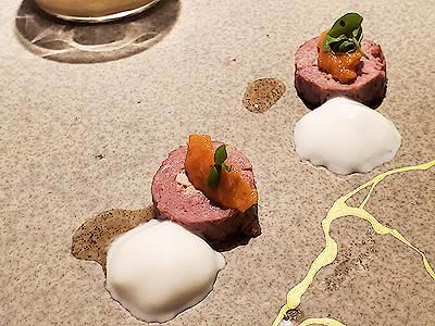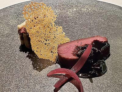 ![]() 長野県の鹿肉 ベリーとバルサミコのソース おやきイメージの黒毛和牛と野沢菜サンド |