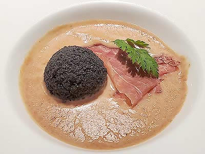 ![]() 地元茸園の肉厚の椎茸にビネガーとトリュフのソース |