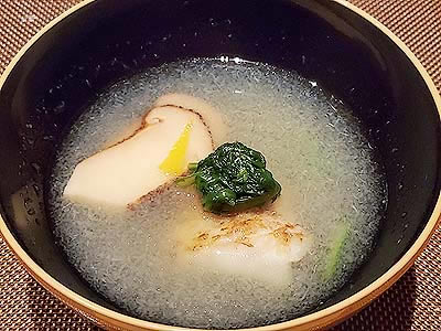 ![]() 御椀 新潟県産のどぐろ 信州蕪仕立て 松茸 菊菜 柚子 |