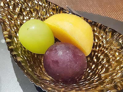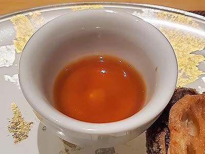 ![]() 秋の実地粉お蕎麦ムース 醤油ジュレ 栗 胡桃 零余子 雲丹 山葵 揚げ蕎麦の実 |
