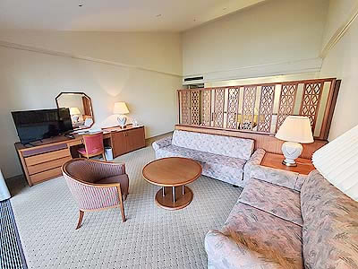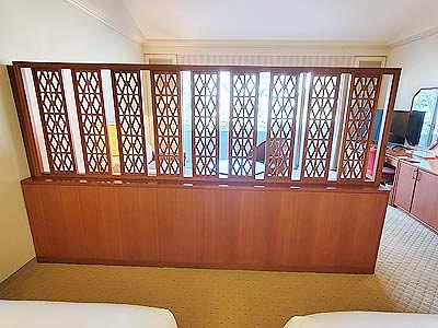 パーテーションでベッドとリビングが仕切られています