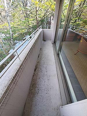 バルコニーからの景色は中庭