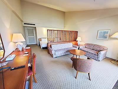 メインの客室は2階なので天井が高い