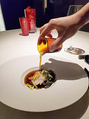 ![]() スープはテーブルでスタッフが掛けて仕上げます |