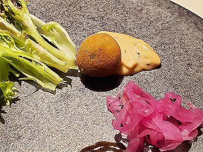 ![]() 鳩のミンチを使ったコロッケ リコッタチーズマヨネーズソース |