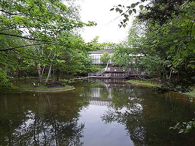 ![]() 中庭には池があります |