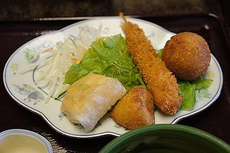 ![]() 海鮮 平目姿造り 4名分を大皿で盛りつけてくれたので迫力があります |