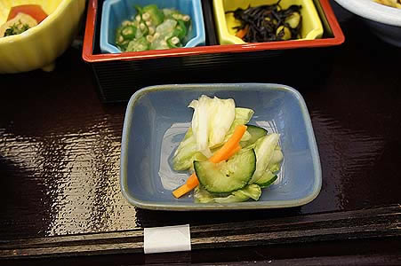 ![]() テーブルに用意された篭盛り 以前に比べると、焼きのりが無くなりました |