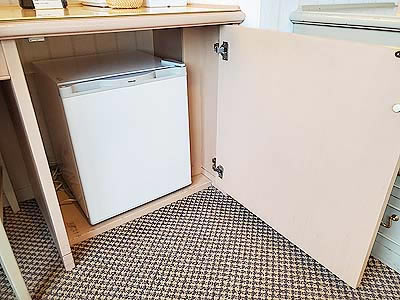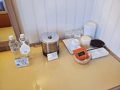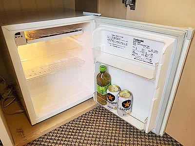 冷蔵庫には有料のお茶とビール
