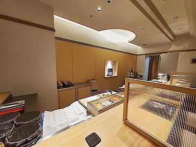 ![]() パーテーションで仕切られたカウンター |