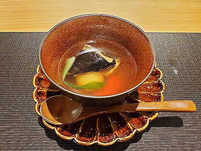 ![]() 宮川の天然水仕立 とらふぐ鰭蒸し雑煮 鰤 河豚ヒレ丸餅 旬野菜 |