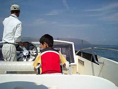 ![]() 幸い、梅雨明け直後で海も穏やかで、 うちの子も初めてのクルーザー体験を満喫しました。 |