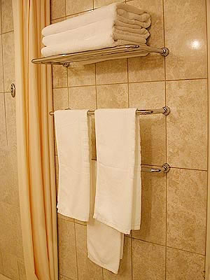 ![]() 備え付けのドライヤーと、 トイレのタンク上の棚にアメニティー |