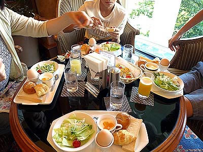 | 今回の旅行は妻の両親と兄弟ファミリーが全員集まり、4家族12名の大所帯です。 夕食は中国料理をガッツリ頂いたので、朝は軽く済まそうとラウンジドルチェのコンチネンタルブレックファーストを楽しみます。 |