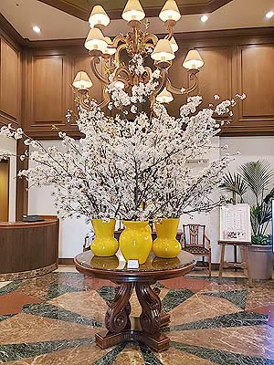 | 早い時刻に到着したので駐車場は空いていました | ロビーには桜 撮影スポットになっていた様で、多くのゲストが楽しまれていました |