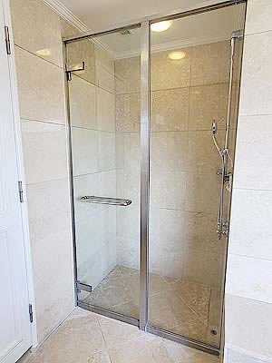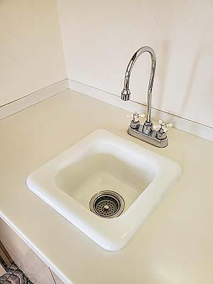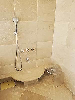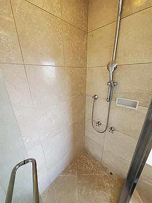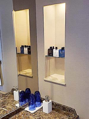 ![]() 壁の棚にはシャンプーなど |