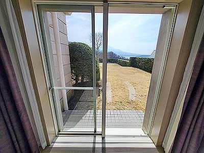 | 翌朝、バスルームからの富士山 | 北側の窓からの景色 窓は開閉しません |