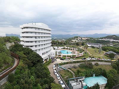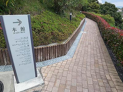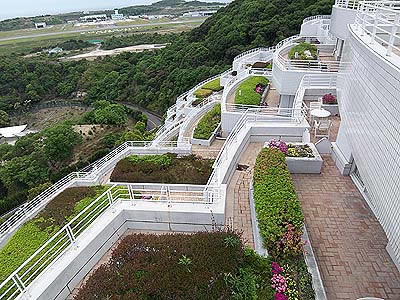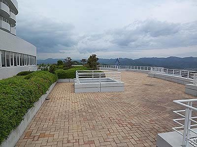 ![]() コンベンションホールの前から本館への 出入り口を出た所にある階段を登ると、 日本料理レストラン前のバルコニーへ出られます |