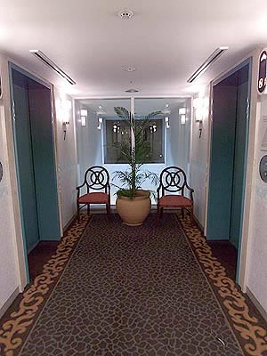 ![]() お部屋に戻って休んだ後、温泉大浴場へ向かいました ナナメに動くエレベーターのホール |